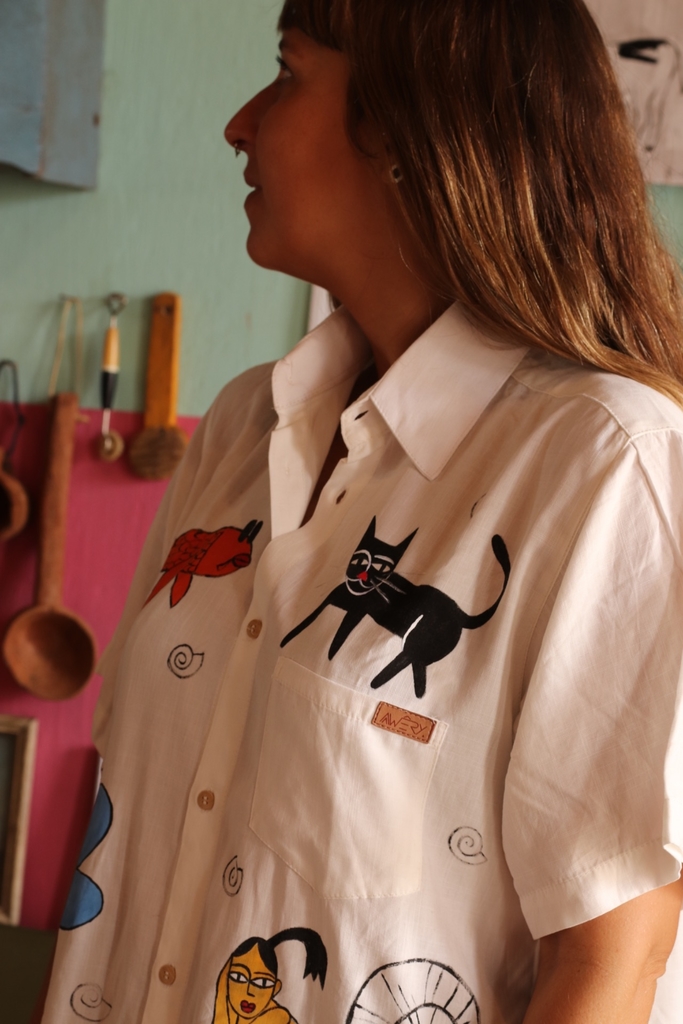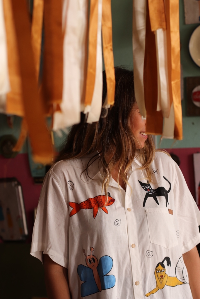 Convidamos o artista @bixatropical pra produzir uma série de camisas pintadas à mão.