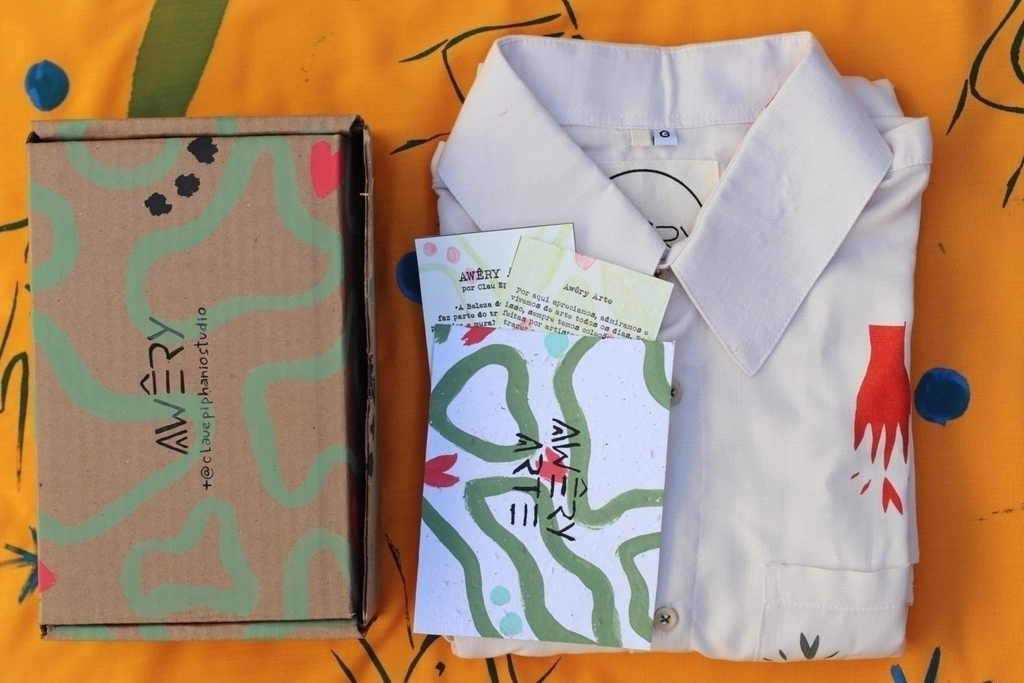 Convidamos a Artista Plástica e Muralista Clau Epiphanio para mais uma edição do Awêry Arte. Dessa vez a Clau fez oito camisas em cinco cores e desenhos diferentes. Todas são pintadas à mão e cheias de cor, detalhes e histórias que só uma peça pintada a mão tem.